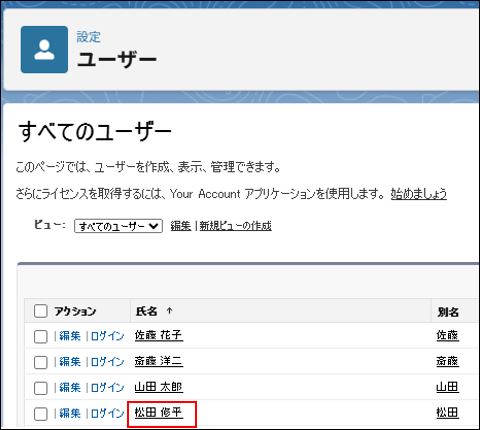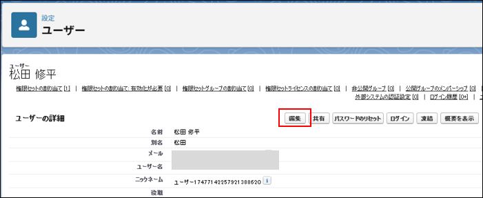 ⑤ユーザーの 「編集」 ボタンをクリックします。