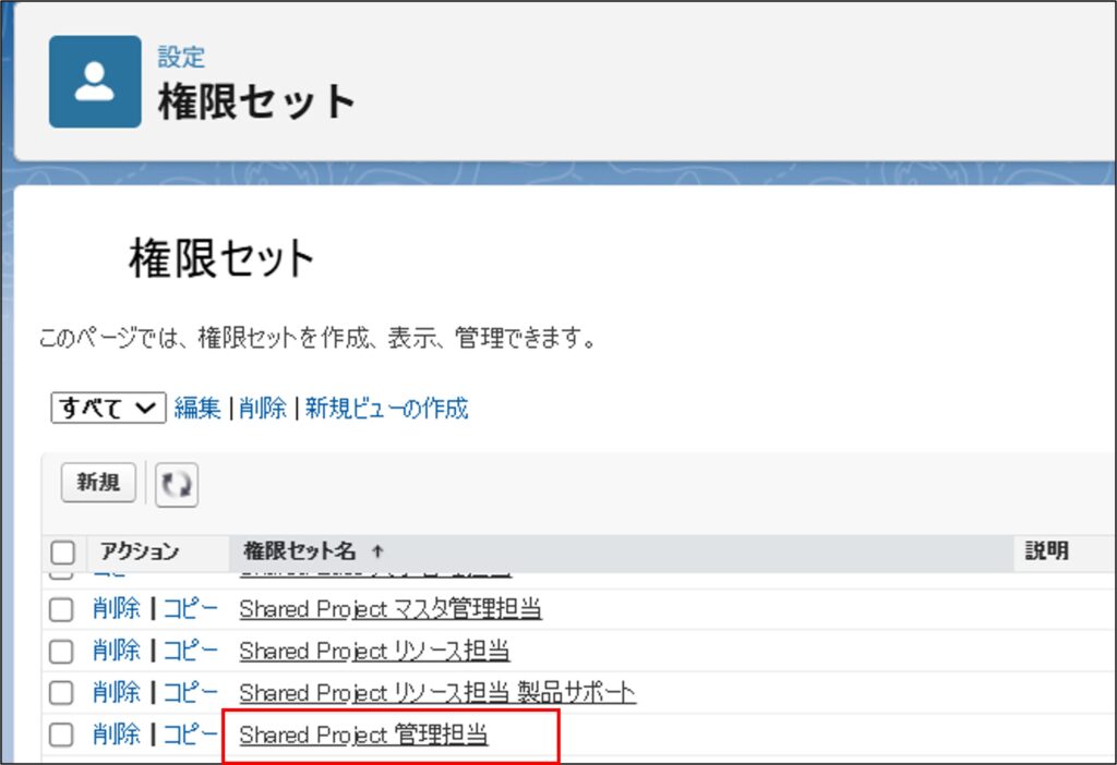 Shared Projectをご利用の際は、以下の通りShared Baseの権限セットを合わせて付与する必要がございます。
