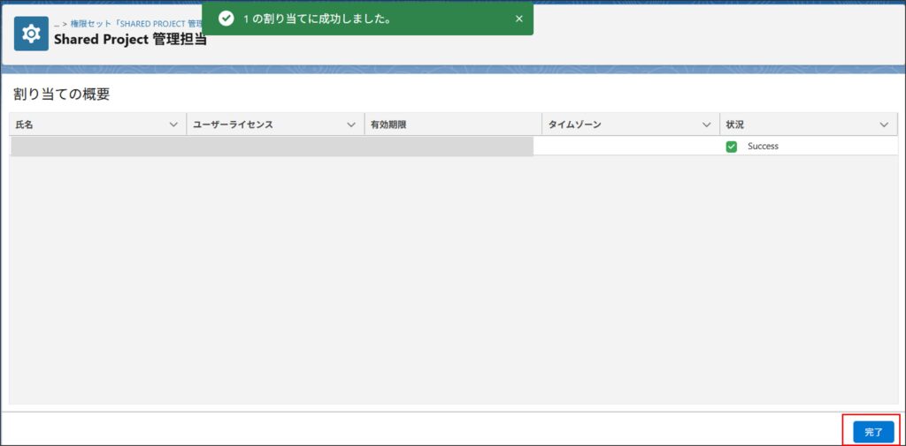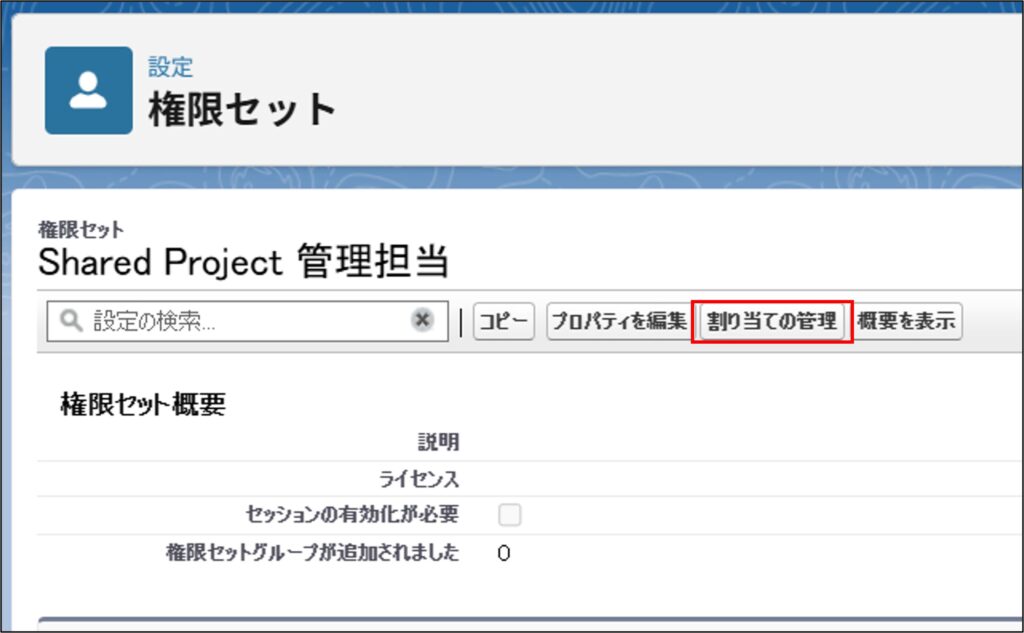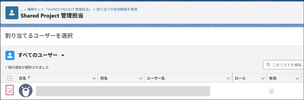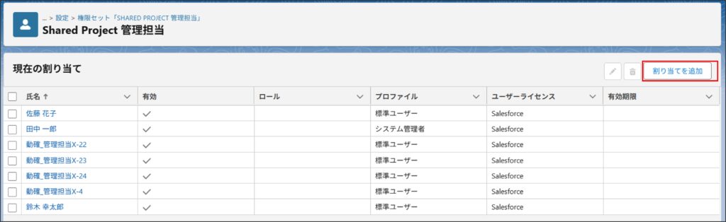 Shared Projectの各機能の利用にあたり、権限セットを利用ユーザーへ割り当てを行います。