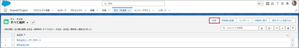 ②「新規」 ボタンより仕入・外注先を新規作成します。
