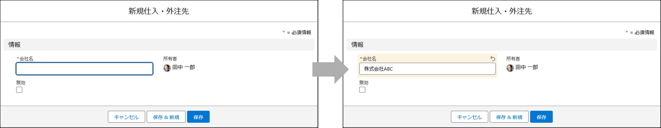 | 無効 | 登録済の仕入・外注先を無効化したい場合はチェックを入れます。 ※新規登録の際には使用しません |