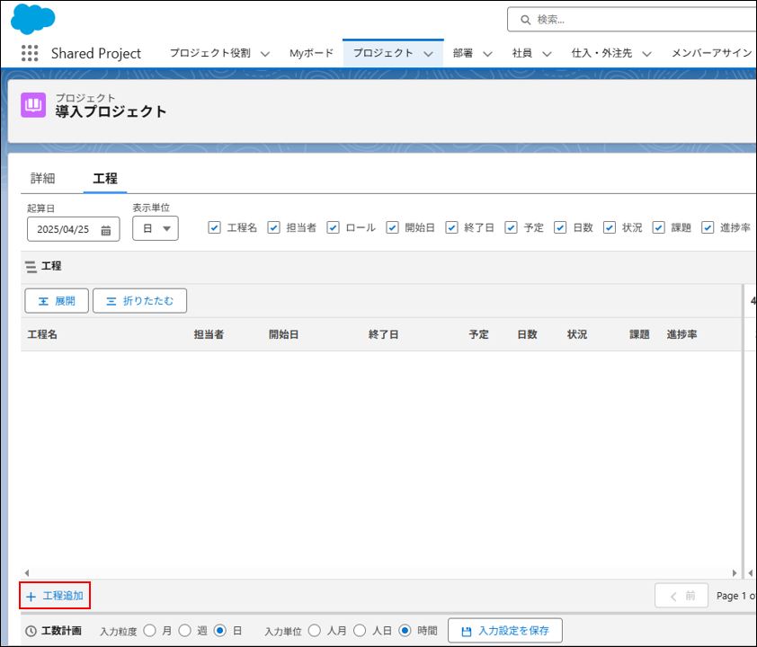 本ページでは、プロジェクトの工程を登録する方法を説明します。
