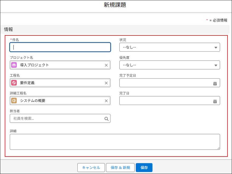 詳細工程名詳細工程の課題の場合、デフォルトで入ります。