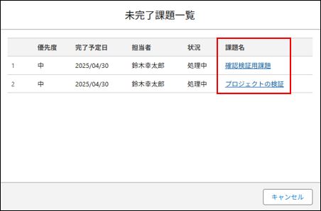 ⑤未完了課題一覧が表示され、「課題名」をクリックします。