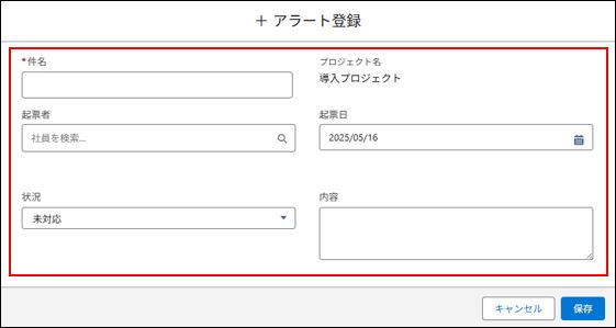 プロジェクトメンバーが、プロジェクト画面にてアラートを登録することができます。